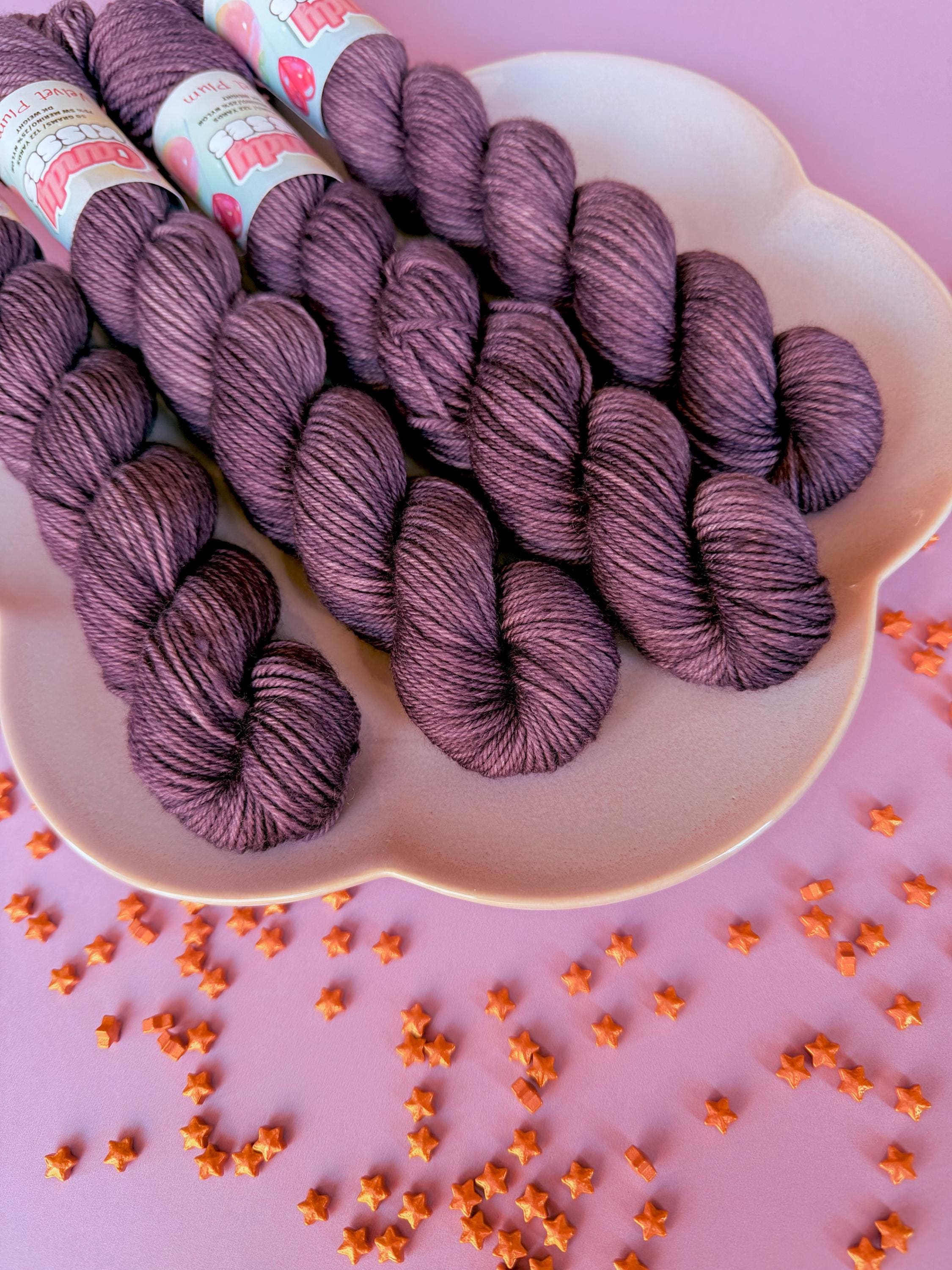 Included in this listing is one, 50 gram skein of yarn in the colorway VELVET PLUM, available on the following base: